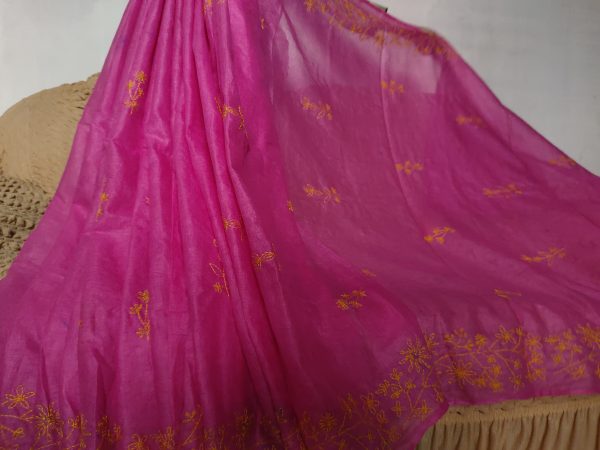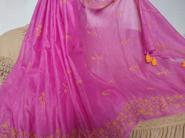 • পুরো শাড়িজুড়ে হ্যান্ডএম্ব্রয়ডারি (সুতার কাজ)