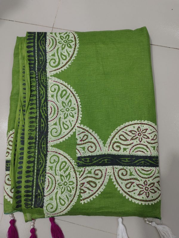 বিচিত্রা একটি রুচিশীল কটন শাড়ি, যেখানে ব্লক প্রিন্টের সাথে যুক্ত হয়েছে সুতার সূক্ষ্ম হস্তশিল্প। প্রতিটি নকশা যেন বলে যায় ভিন্ন এক গল্প। এর সাথে যুক্ত টাসেল শুধু সৌন্দর্যই বাড়ায় না, বরং আপনার সাজকে করে তোলে আরও বেশি স্টাইলিশ এবং নজরকাড়া।