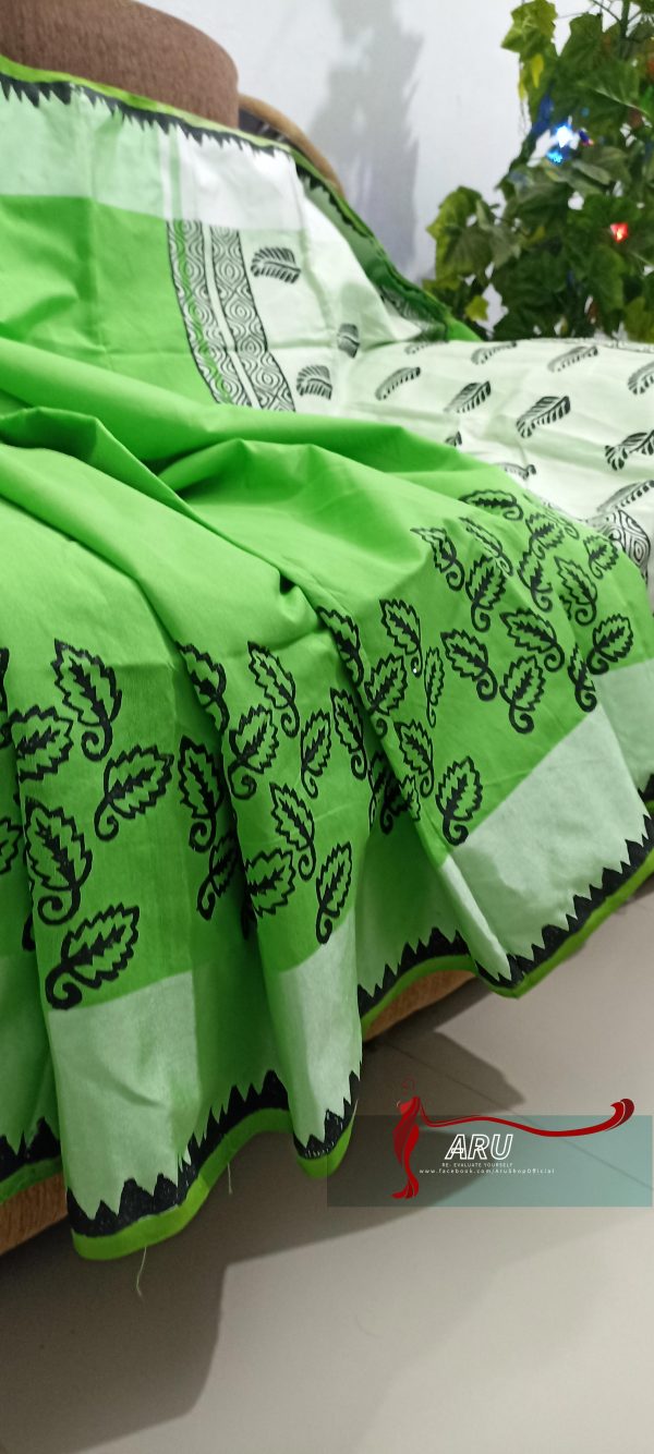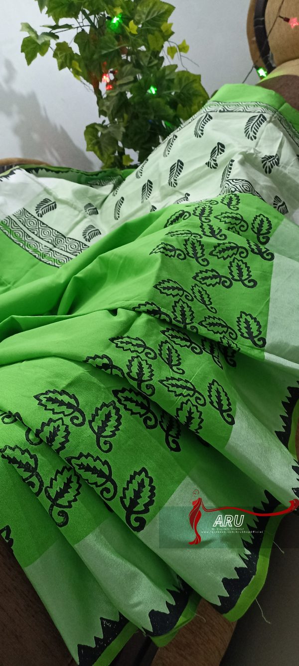 টিয়া রঙের মোহনীয়তায় সজ্জিত আমাদের নতুন গিয়াস কটন শাড়ি,যেখানে ব্লক প্রিন্টের কারুকাজ আর টারসেলের নান্দনিক ছোঁয়া মিলিয়ে শাড়িটিকে দিয়েছে এক অপূর্ব আকর্ষণ।